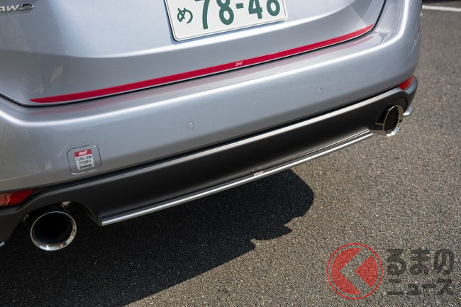 マフラーは明確に「いいね!」。今や騒音規制が厳しいため絶対的な音量こそ上げらないものの、アイドリングと、走り出して20~30km/hまではスバルサウンドを楽しめる。