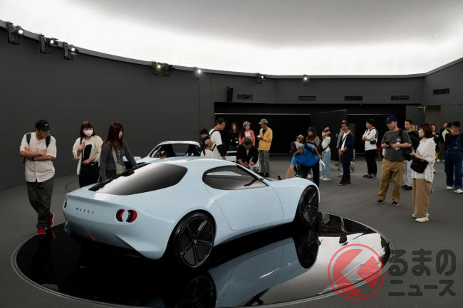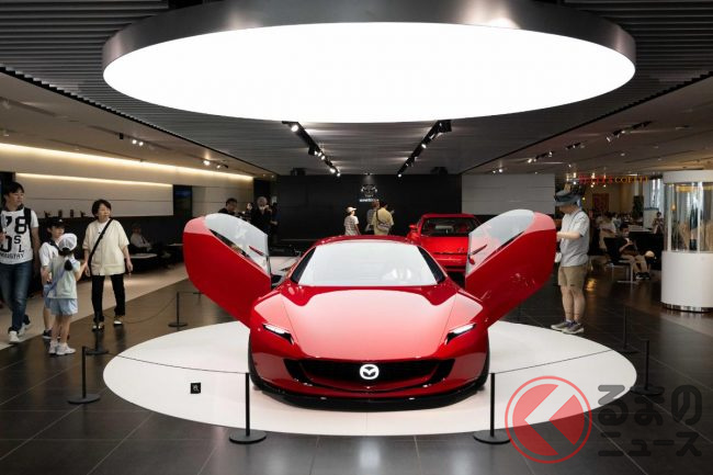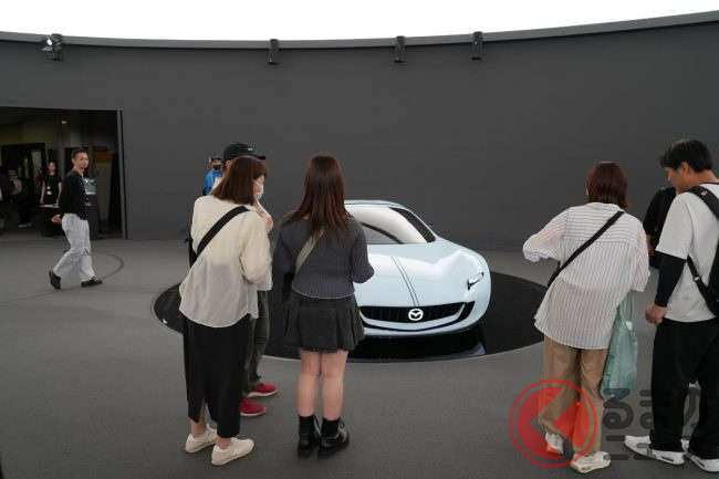 マツダが“白い”新型「和製スポーツカー」実車公開! 「ポルシェ」級スペックの「ロータリー」搭載車に熱望の声! “市販化”進む「アイコニックSP」に反響集まる