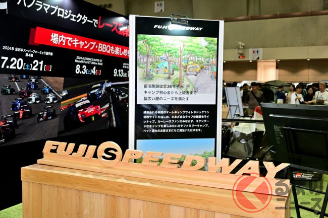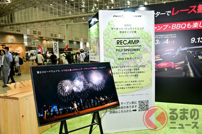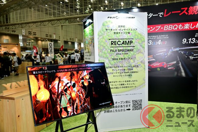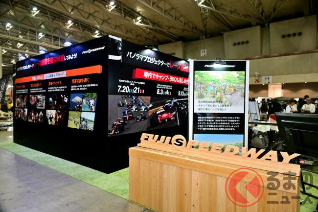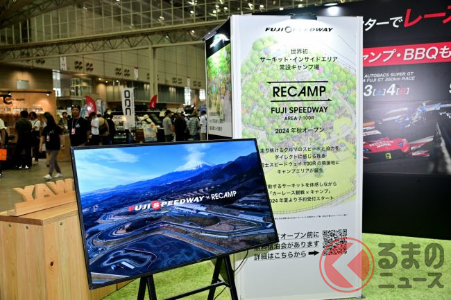 2024年6月28日から30日まで、幕張メッセ(千葉市)で「東京アウトドアショー2024」が開催され、その中に「富士スピードウェイ」(静岡県小山町)が出展していました。「アウトドア」と「サーキット」、一見関係なさそうに思えますが、実は今秋、富士スピードウェイにキャンプ施設ができる予定で、その“体験”ができる展示がありました。