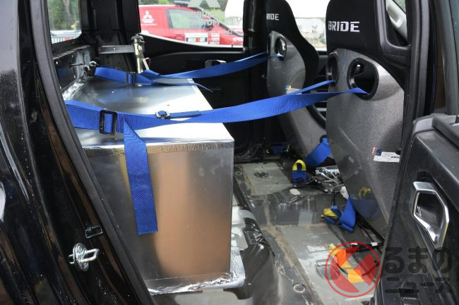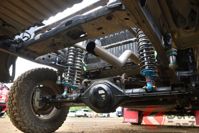 荷台を貫く用に設置された、前述のコイルスプリングを用いた4リンクリジッド式リアサスペンションが、凹凸の激しい路面でも衝撃を大きく吸収しており、ラリードライバーのハイスピードのドライビングでも、標準車よりむしろ“快適”な乗り心地。助手席でも不安感なく乗車していることができます。