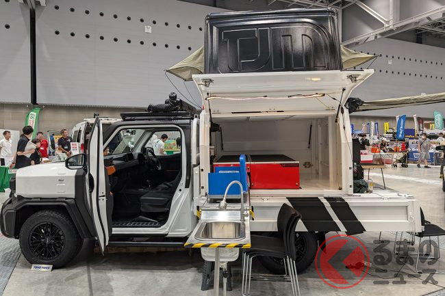トヨタ新型「ハイラックスチャンプ」発売は? 「200万円台」なら爆売か!? ゴツ顔×車中泊仕様も展示! 注目の1台とは