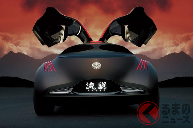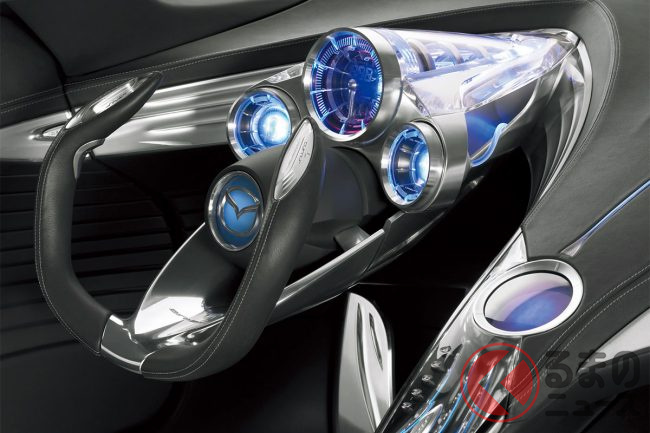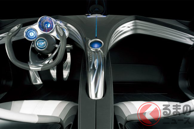 全長4.2m級のマツダ「”4人乗り”スポーツカー」!? 豪華ソファシート&“斬新”ハンドル採用! 画期的ユニット搭載の「リューガ」とは