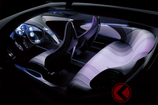 一方で、後部座席は往年の「ペルソナ」や「ユーノスコスモ」で採用されていたラウンジシートのような形状となっており、一転してリラックスできるような空間となっている部分も面白いところ。