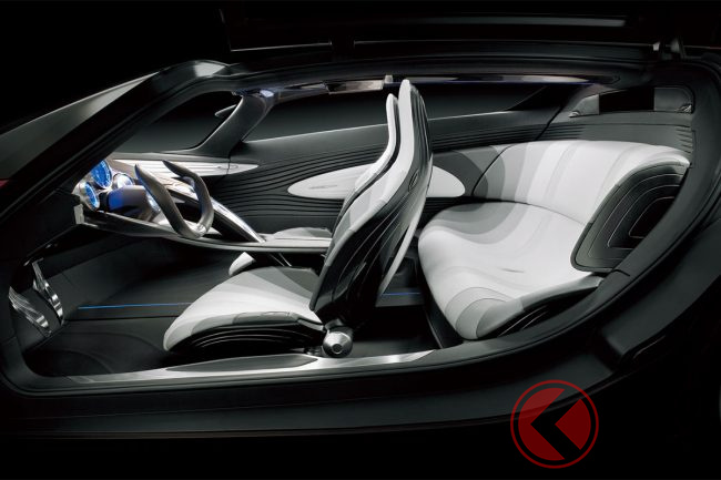 フロントシート中央には大型のフローティングコンソールが備わり、スポーツカーのようなパーソナルな空間が創造され、ステアリングもコンセプトカーらしく操縦かんのようなU字型のステアリングが特徴となっていました。