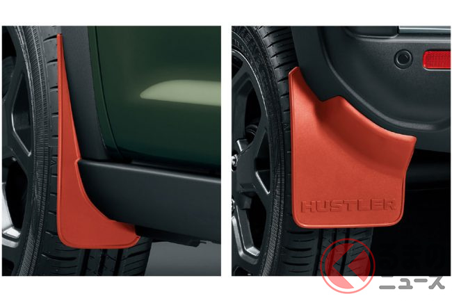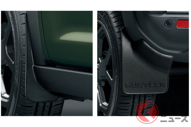 また、ボディサイドには、サイドドア/ドアハンドル/フューエルリッドに装着する迷彩柄でHUSTLERロゴ入りの「サイドデカール」を用意。HUSTLERロゴ入りの「マッドフラップセット(レッドまたはブラック)」とともに、アクティブな装いを可能にしました。