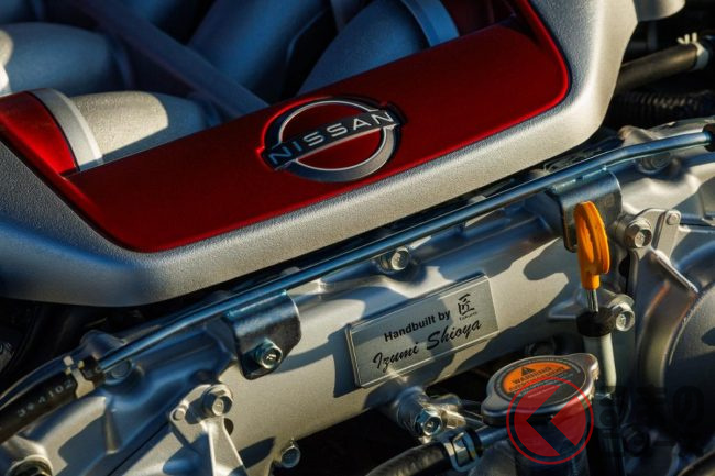 今回のTakumiにも匠の称号を持つエンジニアは関わっており、GT-Rに搭載している「VR38DETTエンジン」の組み立てを担当しています。さらに、エンジンルーム内にはその匠の名を刻んだアルミ製ネームプレートおよびゴールドのモデルナンバープレートが付属。また、エンジンカバーには専用カラー(ブラック/ゴールド)を採用しました。