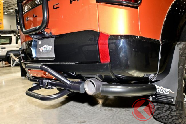 サイドにも大型オーバーフェンダーが装着され、リアアンダーに装備されたトレイルヒッチステップは、リアラダーに登るためのステップとボディをガードする、見た目と実用性を兼ね備えています。