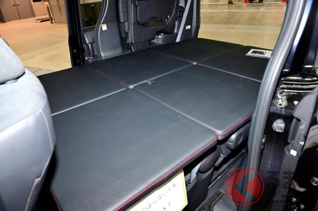 トヨタ斬新「シエンタ“車中泊仕様”」実車展示! 「オシャレなベッド」装備&“DIY”カンタン取付可能! すぐ爆睡できて超便利な「ベッドキット仕様」に熱視線!