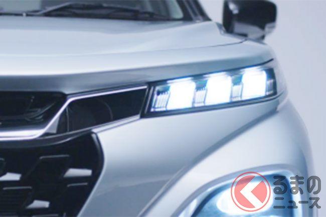 ライトは上下で分割されたタイプで、グリル上部からサイド周りまで連続するような横長の3眼デザインを採用。下部ライトはロービームで2段に分かれた3眼スタイルとなっており、斬新で存在感のあるデザインです。