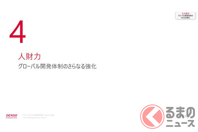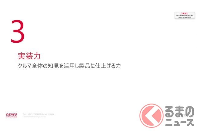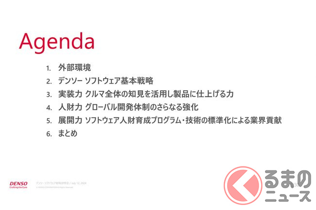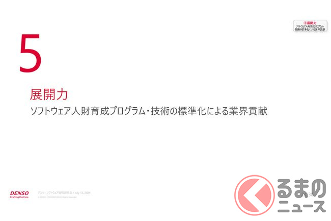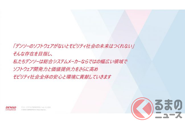 林田氏は「デンソーはメカの会社というイメージがやはり強く、ソフトエンジニアに携わる人を集めるのがなかなか難しい状態になっている。社内のエンジニアをソフトエンジニアに転換していくことと併せ、デンソーはソフトウェアもやることができる会社だというブランディングの強化を進めていく」「『デンソーのソフトウェアがないと、モビリティ社会の未来はつくれない』。こうお客さまに言っていただけるような実績をしっかりとつくっていきたい」と説明を締めくくりました。