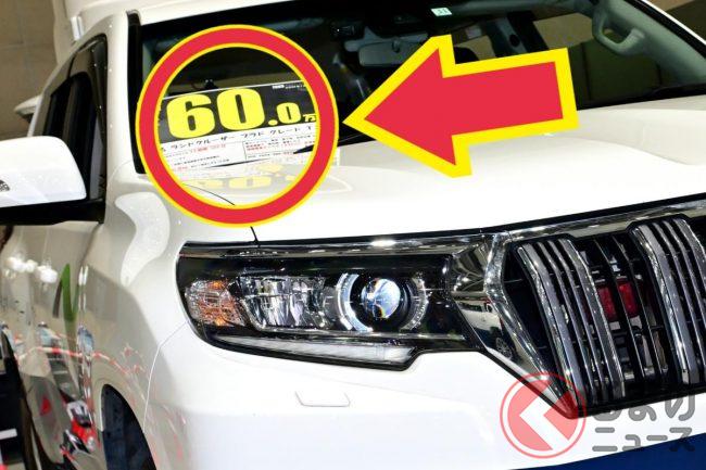 60万…! トヨタ「ランクル“パトカー”」販売!? 白紺ツートン&デカ“赤色灯”の特別仕様! “謎のプライスボード”を掲げた「プラド」実車展示!