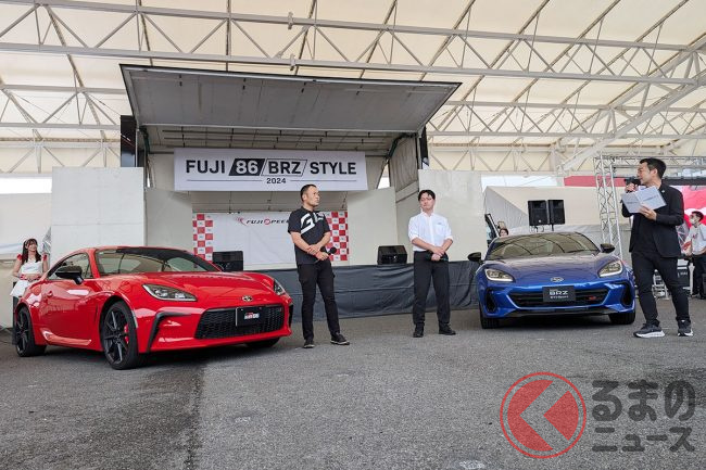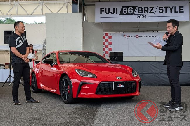 TOYOTA GAZOO Racing(以下、GR)とスバルは2024年7月14日、改良を受けた「GR86」と「BRZ」の実車を、富士スピードウェイ(静岡県駿東郡小山町)で開催された「FUJI 86/BRZ STYLE 2024」で初公開しました。