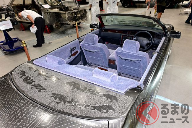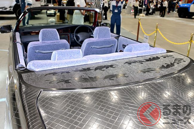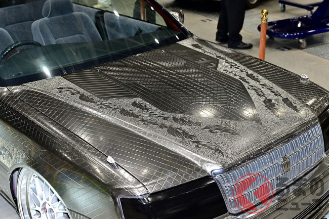 「群馬パーツショー」(2024年7月5日~7日開催)では、オープン化されたトヨタ「クラウン」(10代目)に彫刻を施したド派手な仕様が展示されました。どのようなモデルなのでしょうか。