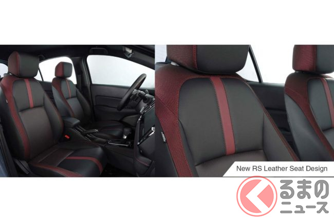 内装面では、RSモデルに赤くカラーリングされたダッシュパネルや、赤いステッチを縫い込んだコンビレザーシートを採用し、“R感”を強調しています。