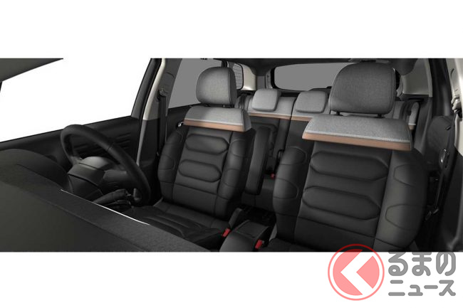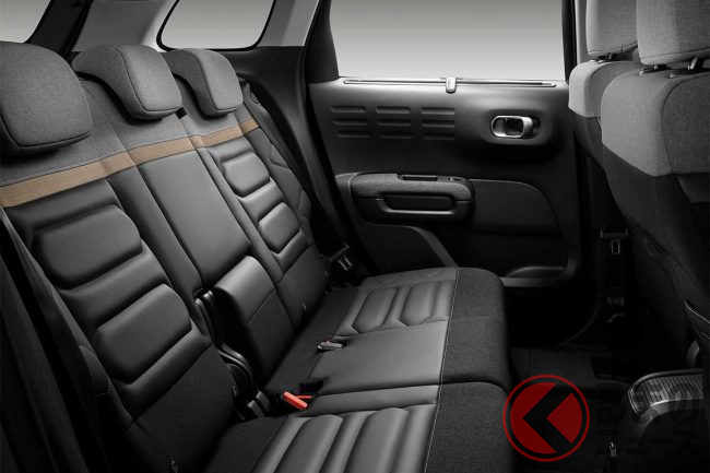 C3エアクロスSUVは、ボディサイズが全長4160mm×全幅1765mm×全高1630mmととてもコンパクトながら、リアシートは前後スライドに加えてリクライニング機能も備えるという居住性の高さが特長です。