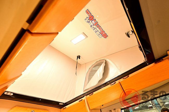 そして、もうひとつ人気の装備がポップアップルーフです。これは、クルマの天井が上に向かって開くことで、車内スペースを拡張して居住・就寝スペースを確保できる装備です。