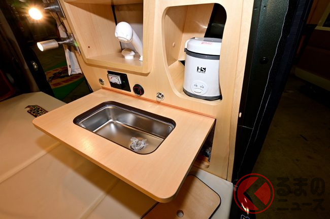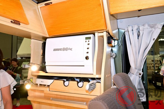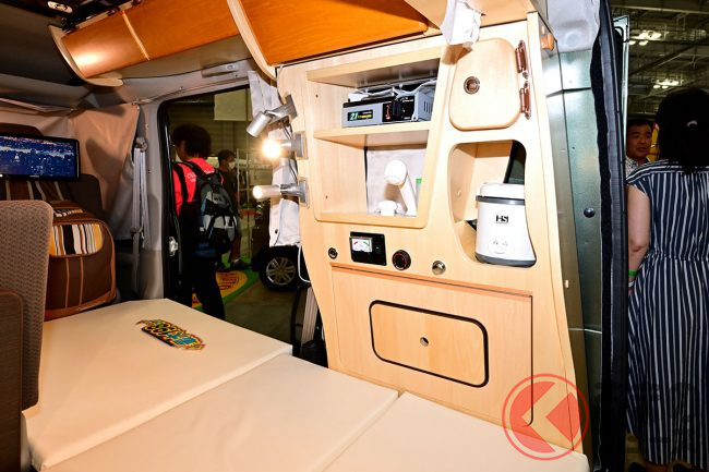 スズキ「エブリイバン」をベースとした給電くんは、家で使う家電をそのままキャンピングカーで使えることが特徴。