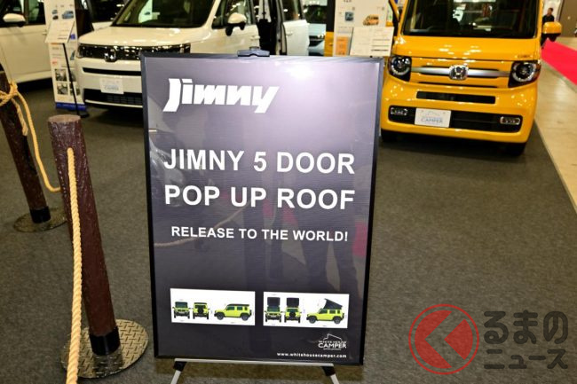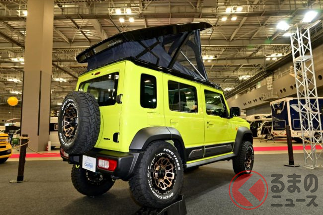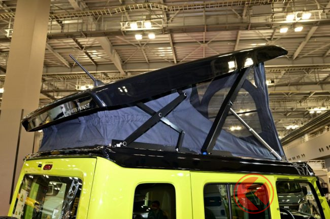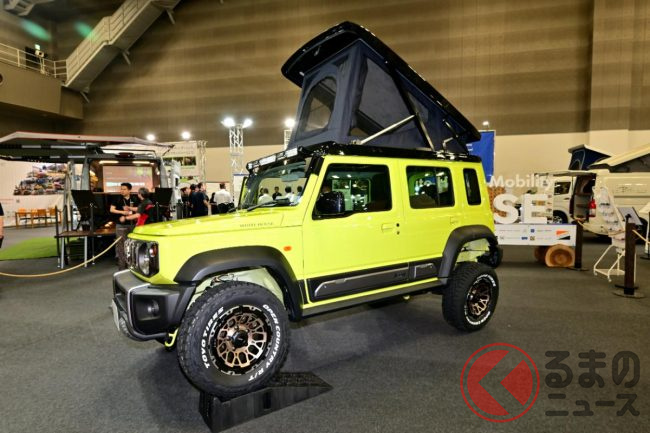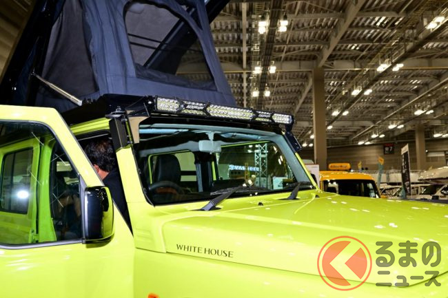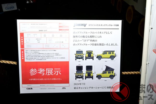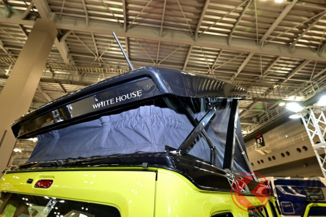2024年7月に開催された東京キャンピングカーショー2024で、ホワイトハウスはスズキ「ジムニー」の5ドアをベースとした軽キャンパーを世界初公開しました。