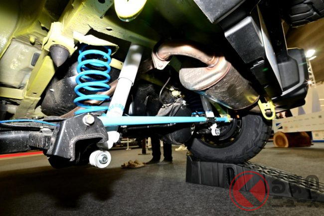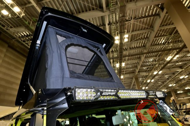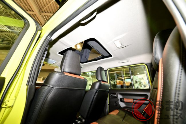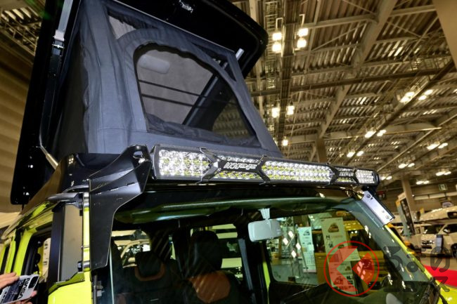 この電動開閉システムも今後の製品化に向けてのテストも兼ねており、展示していたジムニー5ドアには、モーターを2個用いて持ち上げているとのことです。