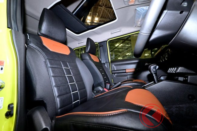 そのため、シートカバーやインナーハンドルの革製品、ボディサイドプロテクターなど現地ディーラーのオプションなども装着されていました。