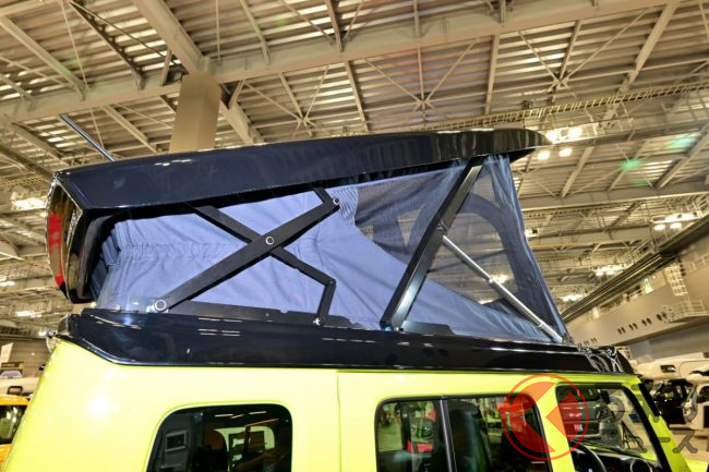 ちなみにポップアップルーフを装着し、閉じた状態のボディサイズは全長3850mm×全幅1645mm×全高1880mmとなり、ポップアップルーフを展開すると全高は2815mmとなります。