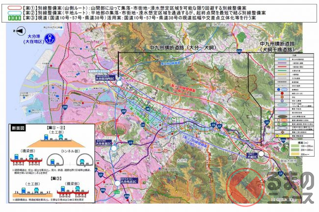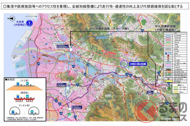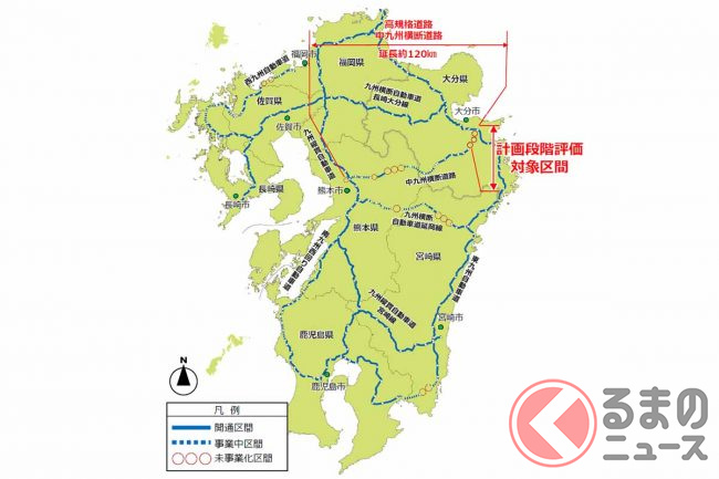 熊本市と大分市を直結する、約120kmの高規格道路「中九州横断道路」のうち、まだ事業化されていない「大分~犬飼」区間が、いよいよ環境アセスメントの本格的な手続きに入っています。完成すればどう便利になるのでしょうか。