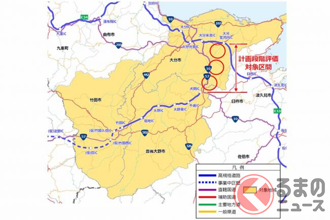 熊本~大分直結「中九州横断道路」全通へ前進中!? 最後の未事業部「大分区間」いよいよ環境アセスメント本格化 東九州道につなぐ18km