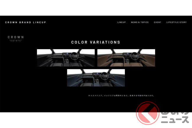 一方インテリアは、インパネやセンターコンソールなど他の16代目クラウンシリーズと共通であるものの、エステートならではのカラーバリエーションを採用。