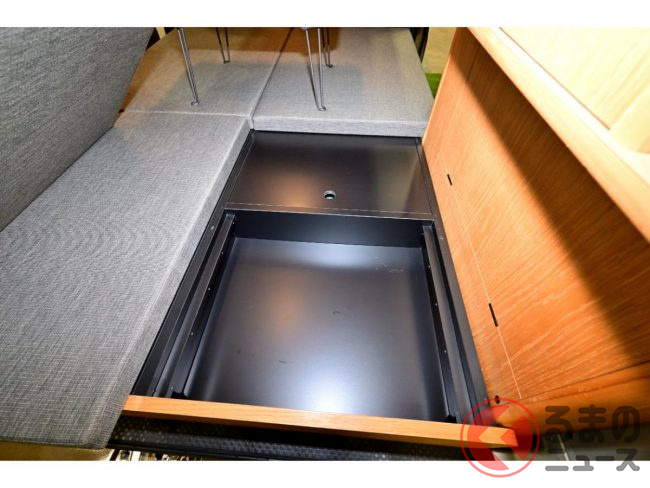 断熱が効いていることでクーラーをガンガン冷やす必要がないため、オプションの冷蔵庫や電子レンジを使用したとしても、バッテリーが空になることは無いとのこと。