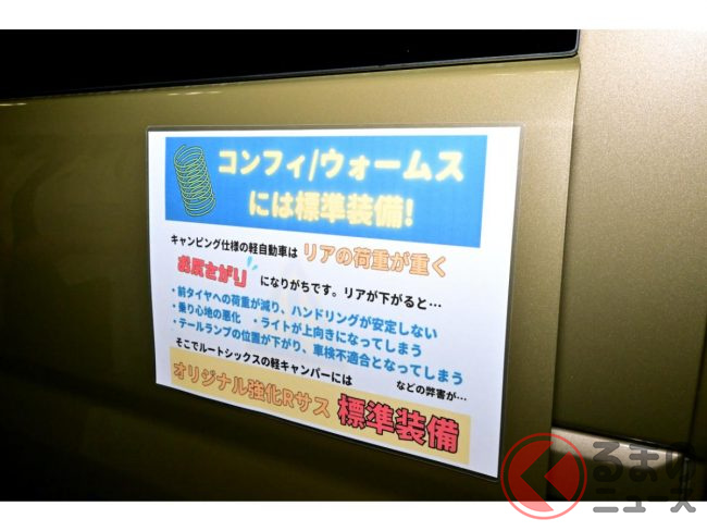 また、オリジナルの「リア強化サスペンション」を用意しており、積載によるリア下りを防ぐ準備もしています。