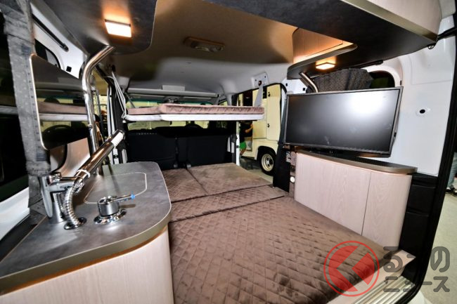 車両価格は400万円弱と軽キャンとしては高額ですが、“豪華な装備のキャンパーが欲しいけど駐車スペースにしばりがある”という都市部にユーザーには福音的なモデルかもしれません。