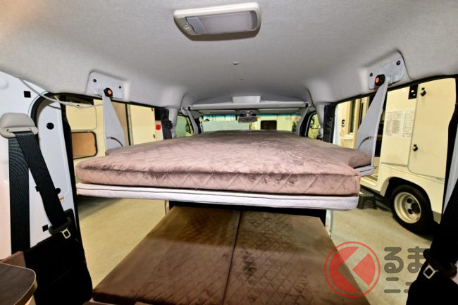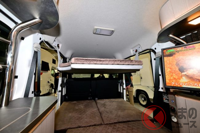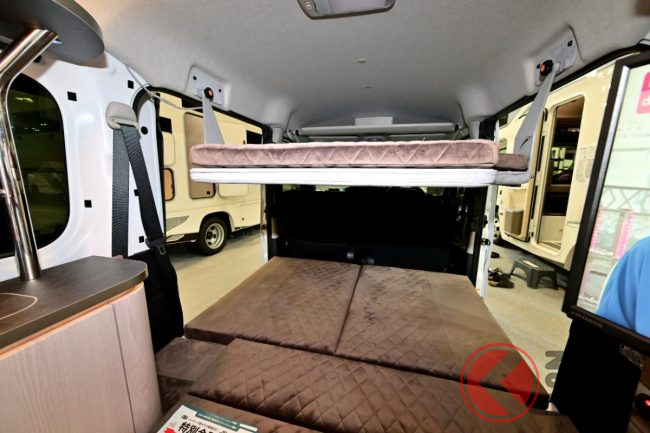 「これまでの軽キャンは、限られたスペースに2名寝なければならないという部分があったのですが、ルネッタはワンランク上の装備と共に、1人1人が快適に寝られる空間を提供しています」(同社スタッフ)