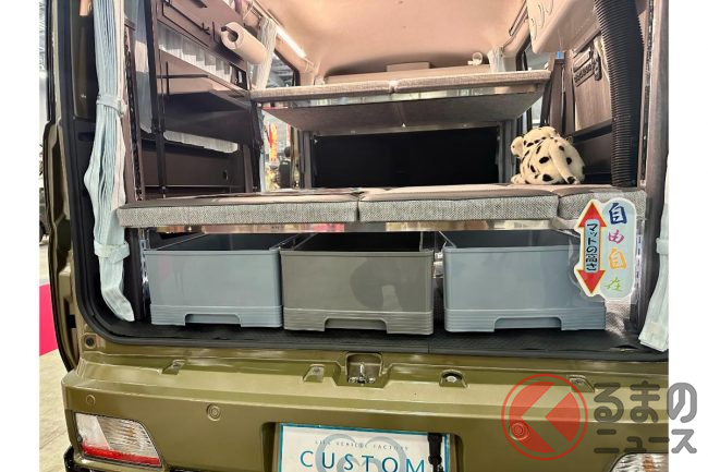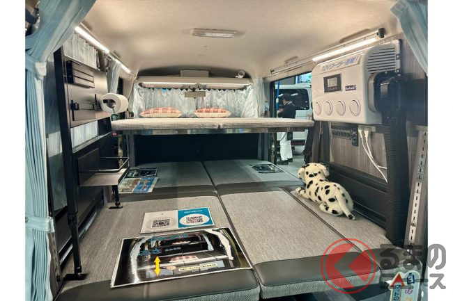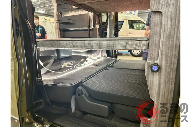 ダイハツ「新・2段ベッド軽バン」展示! 軽でも「4人乗・4人就寝」仕様!? 中身はアトレーに思えない約330万円の「AS」とは