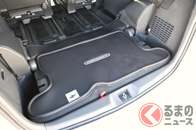 他メーカーのミニバンが跳ね上げ式のサードシート収納となっているのに対し、オデッセイやステップワゴンは床下収納となっています。
