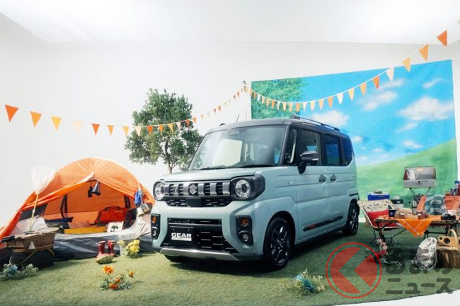 スズキが「新型スペーシア“ギア”」初公開! 「ジムニー風グリル」×丸目2灯デザインがカッコイイ! めちゃ「タフ仕様」の「SUVワゴン」登場
