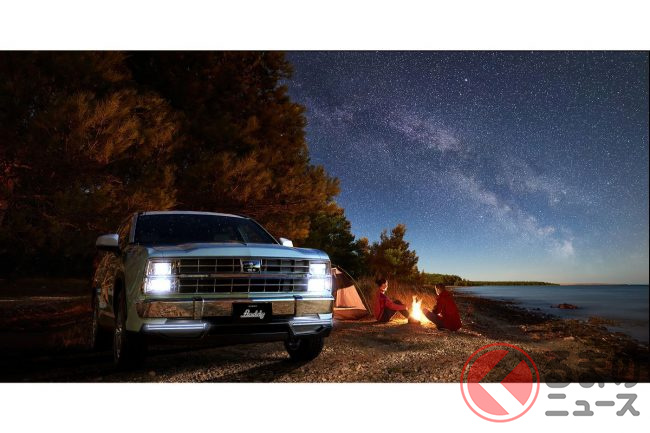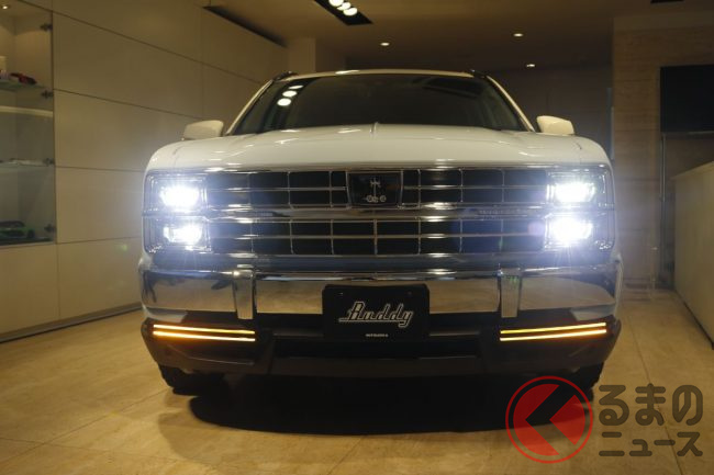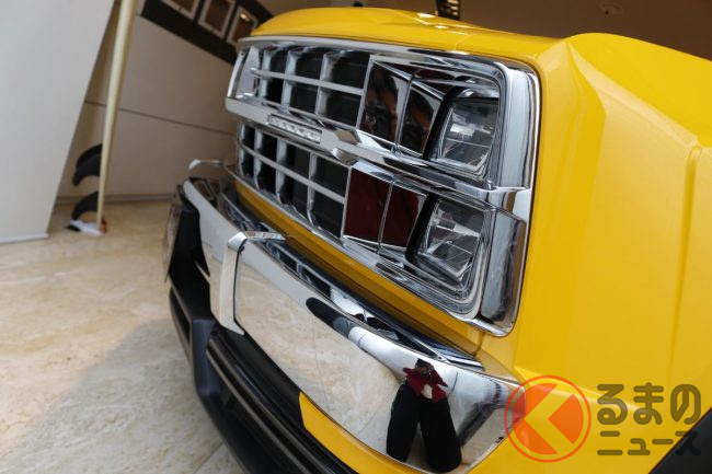 フロントには縦目2灯の角型ヘッドライトや大型メッキフロントグリルなどがあしらわれ、ビンテージ感漂う雰囲気を演出。