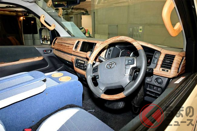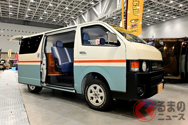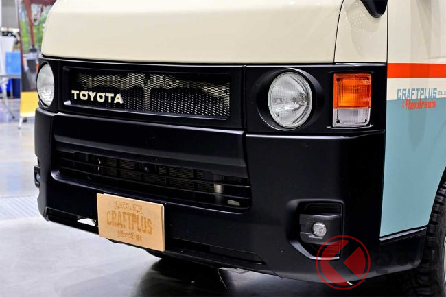トヨタ「“おしゃ”ハイエース」実車公開! 「丸目」な黒顔&「高級ジーンズ」内装がカッコイイ! 爽快カラーの「FDクラシック」登場