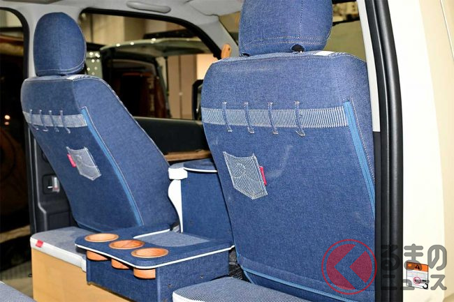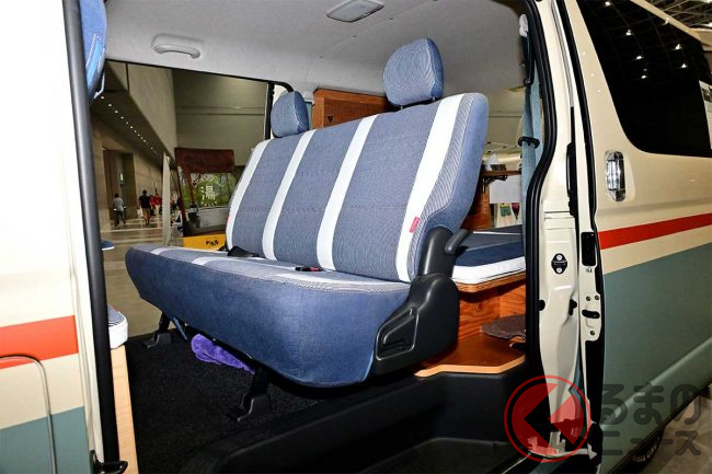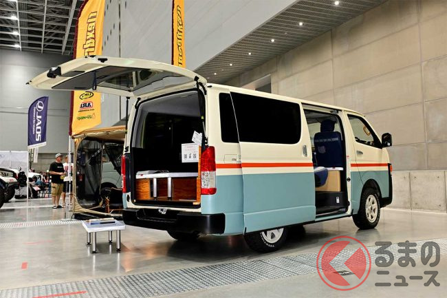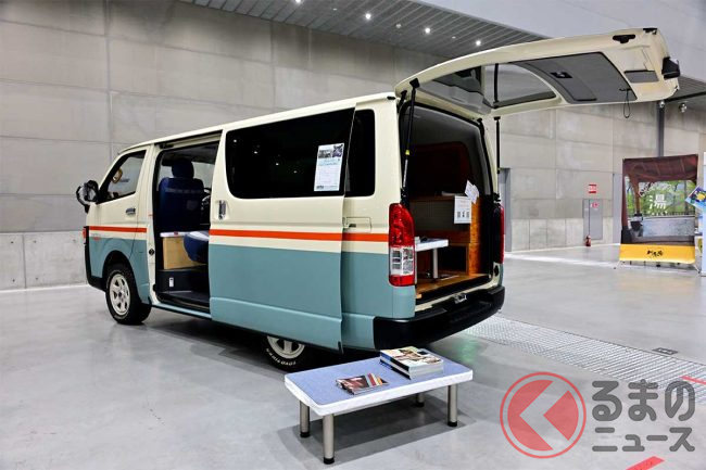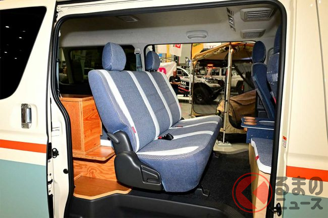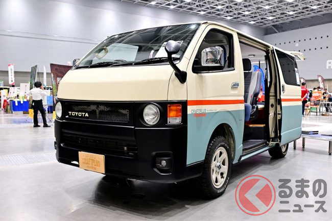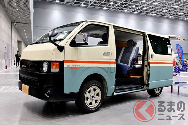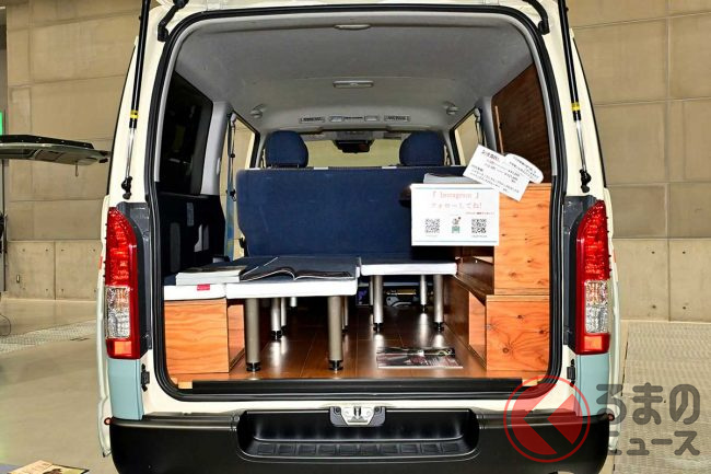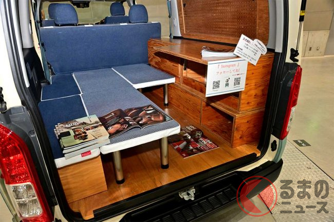 なかでも内装カスタムパーツを展開するCLAFT PLUS(クラフトプラス)が、トヨタ「ハイエース」をベースに、車中泊も可能なカスタムモデルを実車展示し注目を集めていました。
