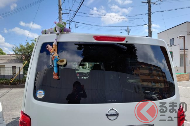 また、クルマの外側の後部ガラス付近にアニメーション映画「トイ・ストーリー」のキャラクター人形を取り付けているケースもみられます。