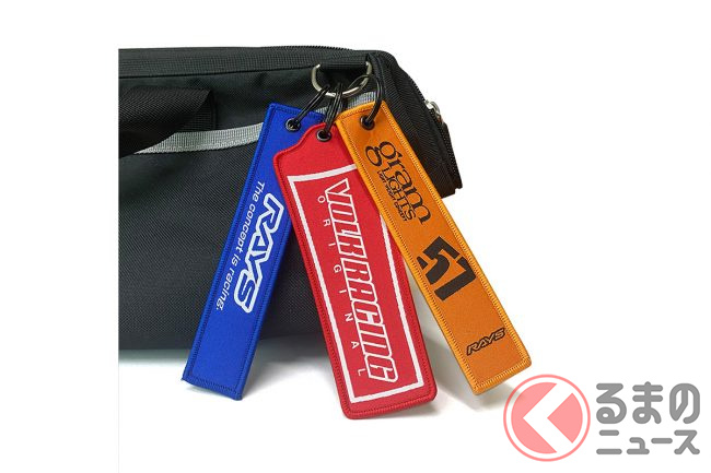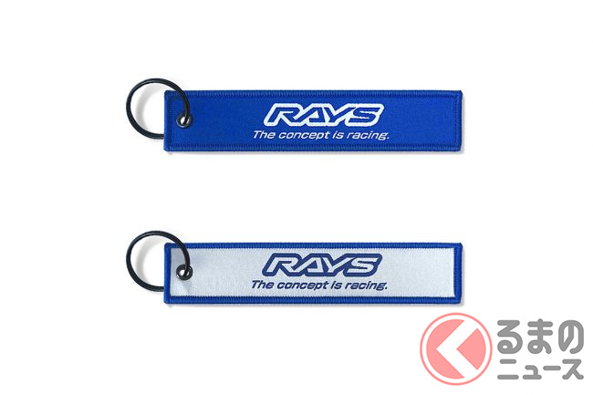 「RAYS OFFICIAL KEY TAG 24S」は、キーリング付きの両面刺繍(ししゅう)のキータグです。ジャガード加工、ツイル生地で、「RAYS」「VOLK RACING」「gramLIGHTS」の3種類をラインナップしています。