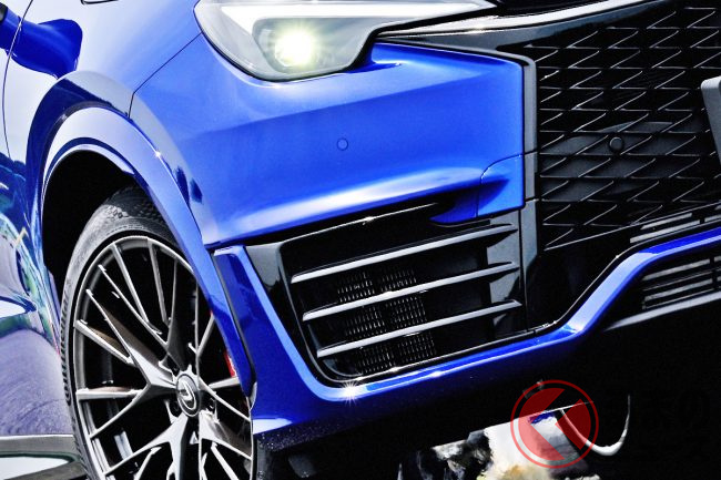 前後フェンダーには、広げられたトレッドとタイヤを収めるためのオーバーフェンダーが追加されました。これにより全幅はノーマル比で+15mmワイド化しています。