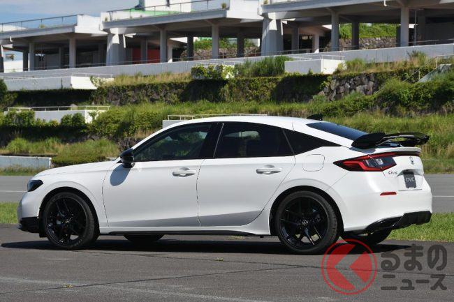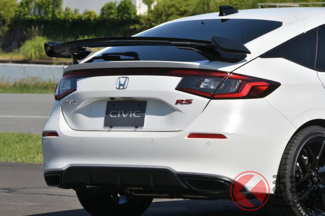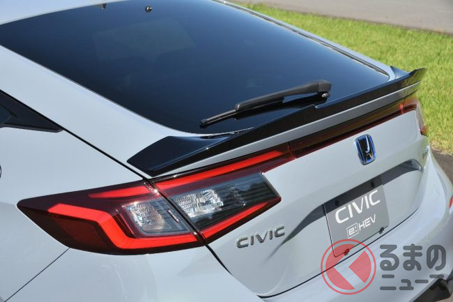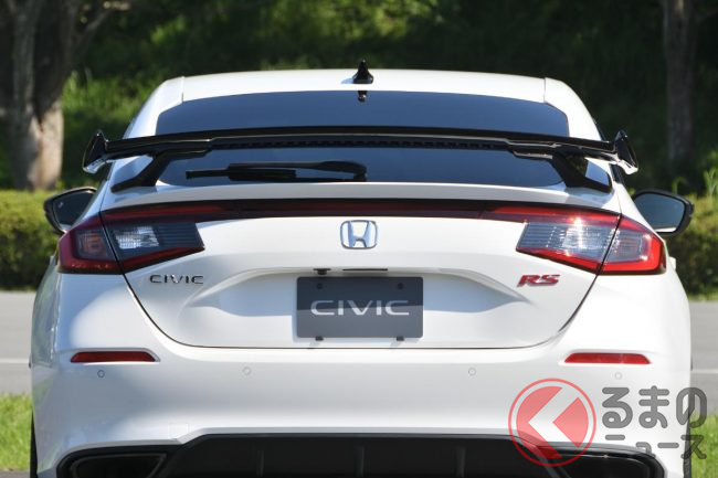 ホンダ新型「“スゴい”ハッチバック」初公開! “タイプR”譲りの「巨大リアウイング」&ダックテール! 超スポーティな「新型シビック」純正アクセ発表!