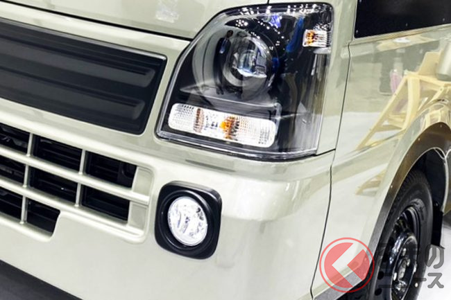 スーパーキャリイのヘッドライトは落ち着いた雰囲気の縦長タイプ。グリルも大きさも相まって柔らかな印象となっています。