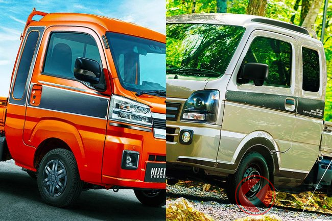 スズキの「スーパーキャリイ」とダイハツの「ハイゼットジャンボ」は、どちらも通常の「キャリイ」および「ハイゼット」より拡大したキャビンの広さが特徴の軽トラックです。
