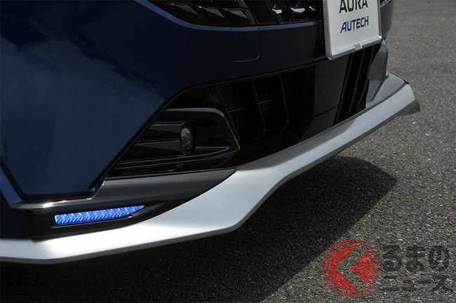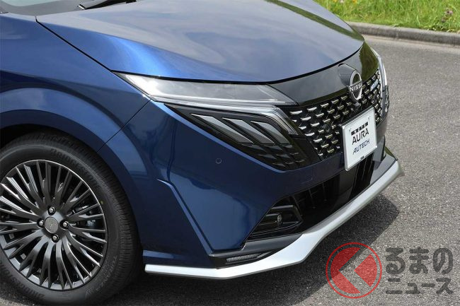 日産「新型“ちいさな高級車”」新登場! オシャレグリル&専用内装が「超豪華」! キラキラ顔の「オーラAUTECH」どう変わったのか