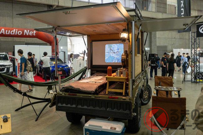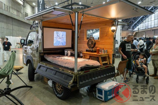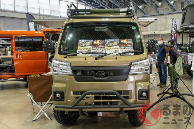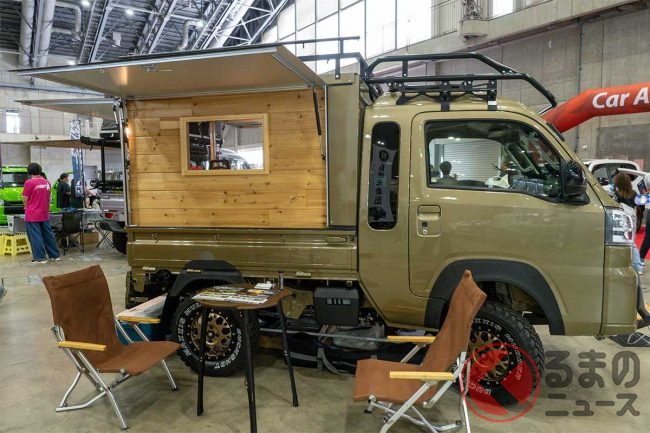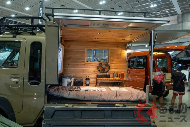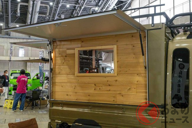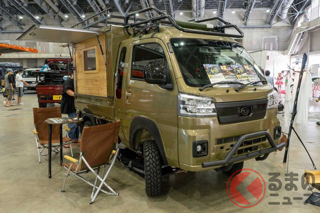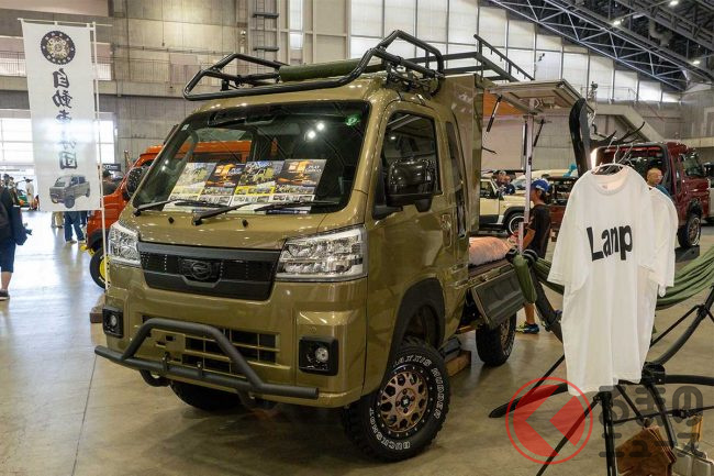 ダイハツ「“重い”軽トラ」公開! めちゃ“広い”「木製」荷台がスゴイ! 「寝泊まり」も可能な「ケーランプス」とは