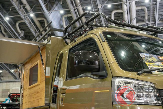 通常のケーランプスでもこうしたカスタマイズは可能だといいますが、木材を天井だけに使うなど、排気量の小さな軽トラックでも十分走行できる程度の重量に抑えた仕様がオススメとのことでした。