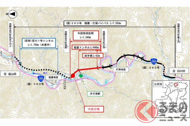 石川~長野が最短距離!?「小松白川連絡道路」がスゴい 長大トンネルで「山岳地帯」抜ける高規格道路 “スーパー林道”の代替なるか
