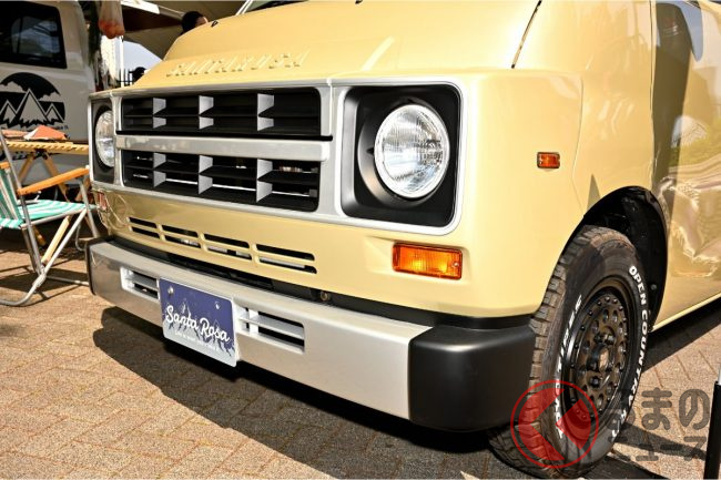 一番変化しているのは、やはりフロントフェイスでしょう。4象限図(マトリクス)のように4つに分かれたフロントグリルに、大きなバンパーを装着。その見た目は、いかにもレトロなアメリカ車といった雰囲気です。車体は、のどかさを感じるベージュに変更されています。