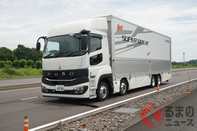 日々さまざまな荷物を積んで日本中を走る大型トラックの世界も、乗用車のような先進安全装備を備えるようになっています。そんな「現代の最新トラック」の姿とは、どのようなものなのでしょうか。三菱ふそうの新型「スーパーグレート」試乗会で体感してきました。